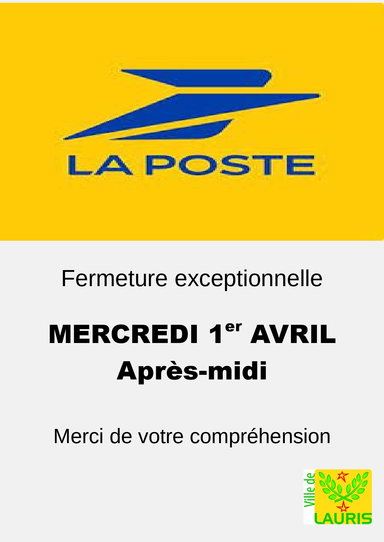 Fermeture exceptionnelle de la Poste